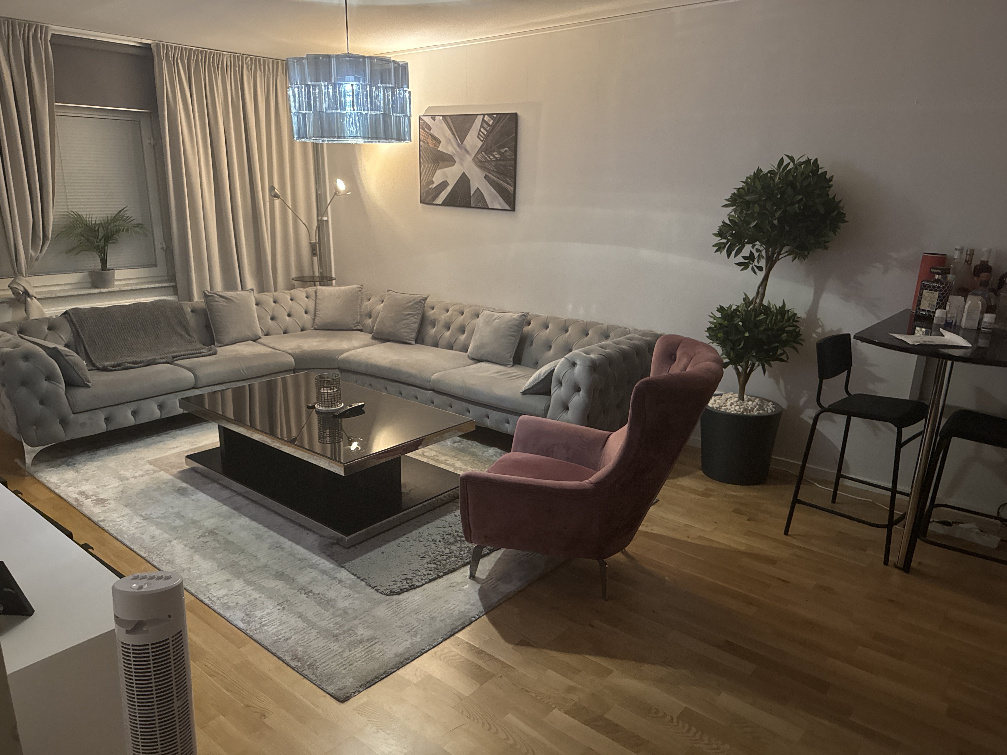 Welcome to a bright and well-planned apartment with an open layout and large windows that fill the space with natural light. The home includes all essential furniture — such as a bed, sofa, chairs, TV, and other household items — making it ready for you to move in and start living comfortably right away. It also features a modern kitchen, a fresh bathroom, and a spacious balcony overlooking the courtyard. The area is quiet and pleasant, with parks, shops, and excellent public transport nearby. Välkommen till en ljus och välplanerad lägenhet med öppen planlösning och stora fönster som släpper in mycket dagsljus. Bostaden hyrs ut fullt möblerad med säng, soffa, stolar, TV och andra nödvändiga möbler och hushållsartiklar – redo att flytta in direkt. Här finns ett modernt kök, ett fräscht badrum och en rymlig balkong med utsikt mot innergården. Området är lugnt och trivsamt med närhet till grönområden, butiker och goda kommunikationer.
