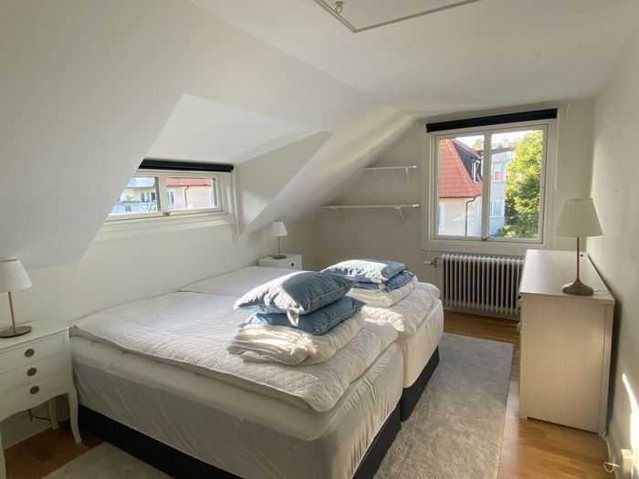 Vacker, möblerad vindsvåning med A/C i bra skick med centralt läge. 5-10 minuter gångavstånd till Södertälje Centrum samt Centralstationen. Nära till mataffärer, restauranger och flera gym. Lägenheten består av två ordentliga sovrum och ett vardagsrum. Utrustat kök i gott skick med sparsamt använda vitvaror. Rymligt badrum med kombinerad tvättmaskin/torktumlare. Internet ingår. Elkostnad tillkommer. (Uppvärmning sker via luftvärmepump). Stabil ekonomi med fast inkomst och inga betalningsanmärkningar krävs. Uthyres tillsvidare. Vi ser gärna att hyresgästen vill stanna under en längre tid.