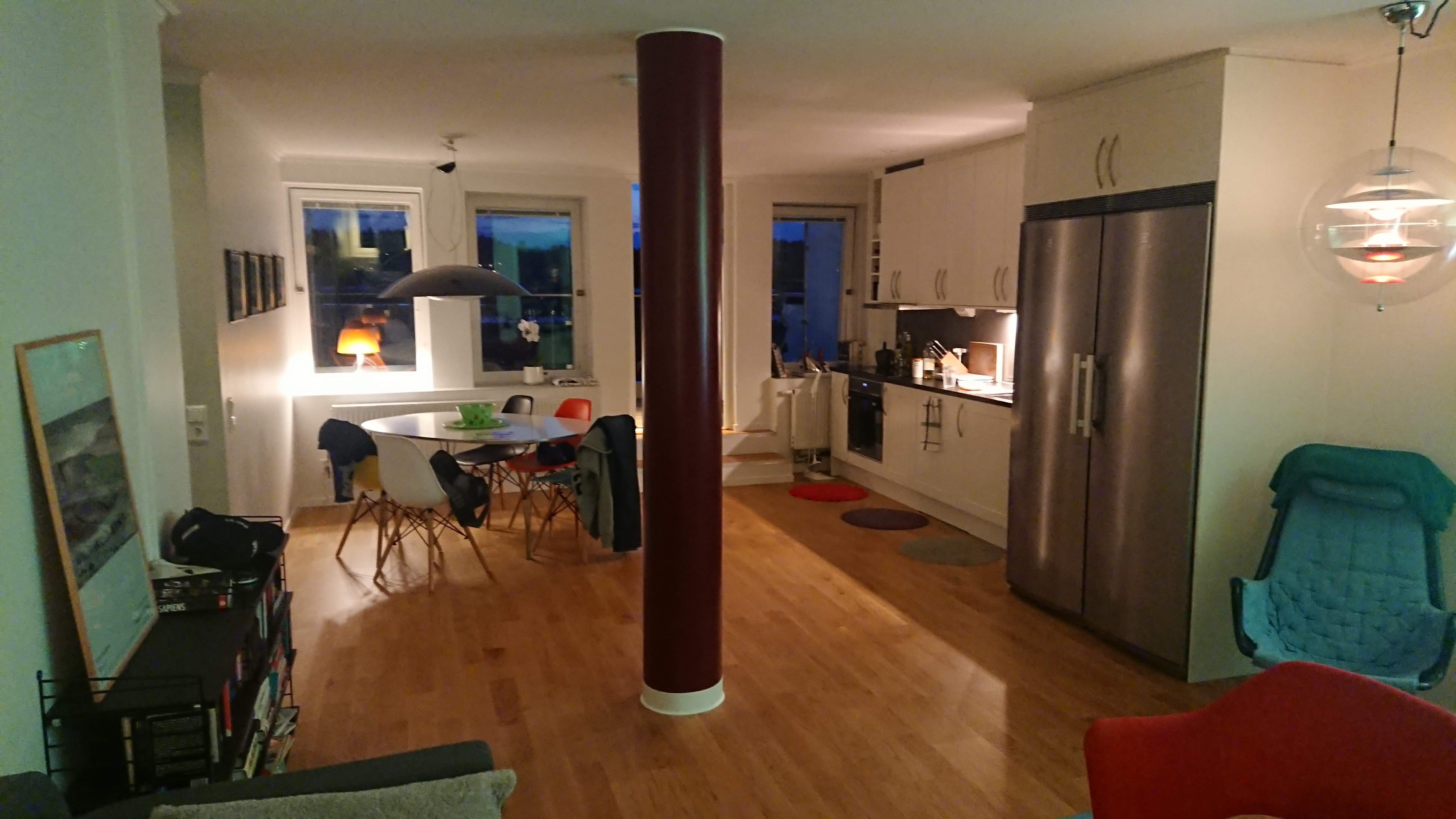 Läget är fantastiskt, i huset eller inom en 100-meters radie finns allt tänkbart man behöver; mataffärer, gym, badhus, sportanläggningar, klädaffärer, restauranger, caféer, barer, Södertälje kanal med fina promenadstråk och möjlighet till sol och bad. Samtliga bussar nås via endast en hissresa ner till gatan & pendeltåget till Stockholm är en fem minuters promenad bort. Fjärrtågstation Södertälje Syd når man via pendeltåg eller taxi. Nytt, fräscht och väldesignat badrum med tillbehör som tvättmaskin, takspottar, golvvärme & handduksvärmare samt med lika stora fönster som i rummet men helt utan insyn då lägenheten är beläget högt över alla andra. Fullt utrustad kök med varmluftsugn, micro, diskmaskin, allt från Electrolux. Skön exklusiv dubbelsäng(180x200) från Carpe Diem av modellen Sandö. Stor takterrass om 10 kvm med eftermiddags/kvällssol med glasat räcke. Det mesta av möblemanget är riktiga designklassiker, som du ser på bilderna. Tillgång till gemensam takterrass på 4:e våningen med grill, sittplatser såväl under bar himmel och under tak väl samt med väl omhändertagna blomlådor. Garage kan fås i huset med egen ingång direkt till hissarna.